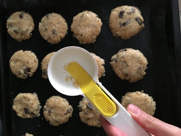 Vigyázok, hogy bőven legyen helyük terjeszkedni, különben összesülnek. Vizes kanállal kicsit ellapogatom a sütiket. A kekszeket 10-11 percig sütöm. A sütés után szépen megkeményednek, de belülről puhák maradnak. Várd meg míg teljesen kihűlnek, aztán egy dobozban akár egy hétig is eláll, ha marad 🙂